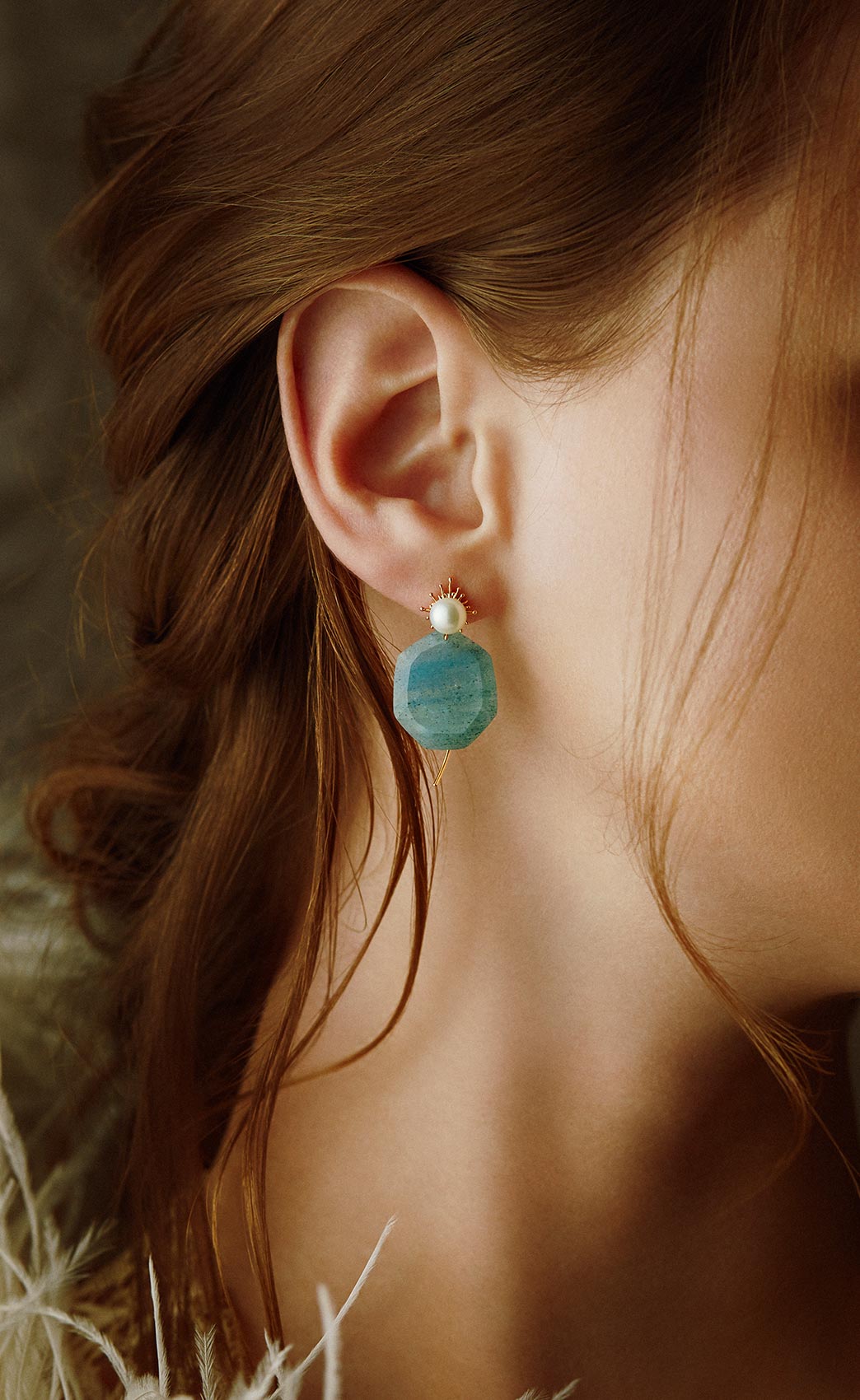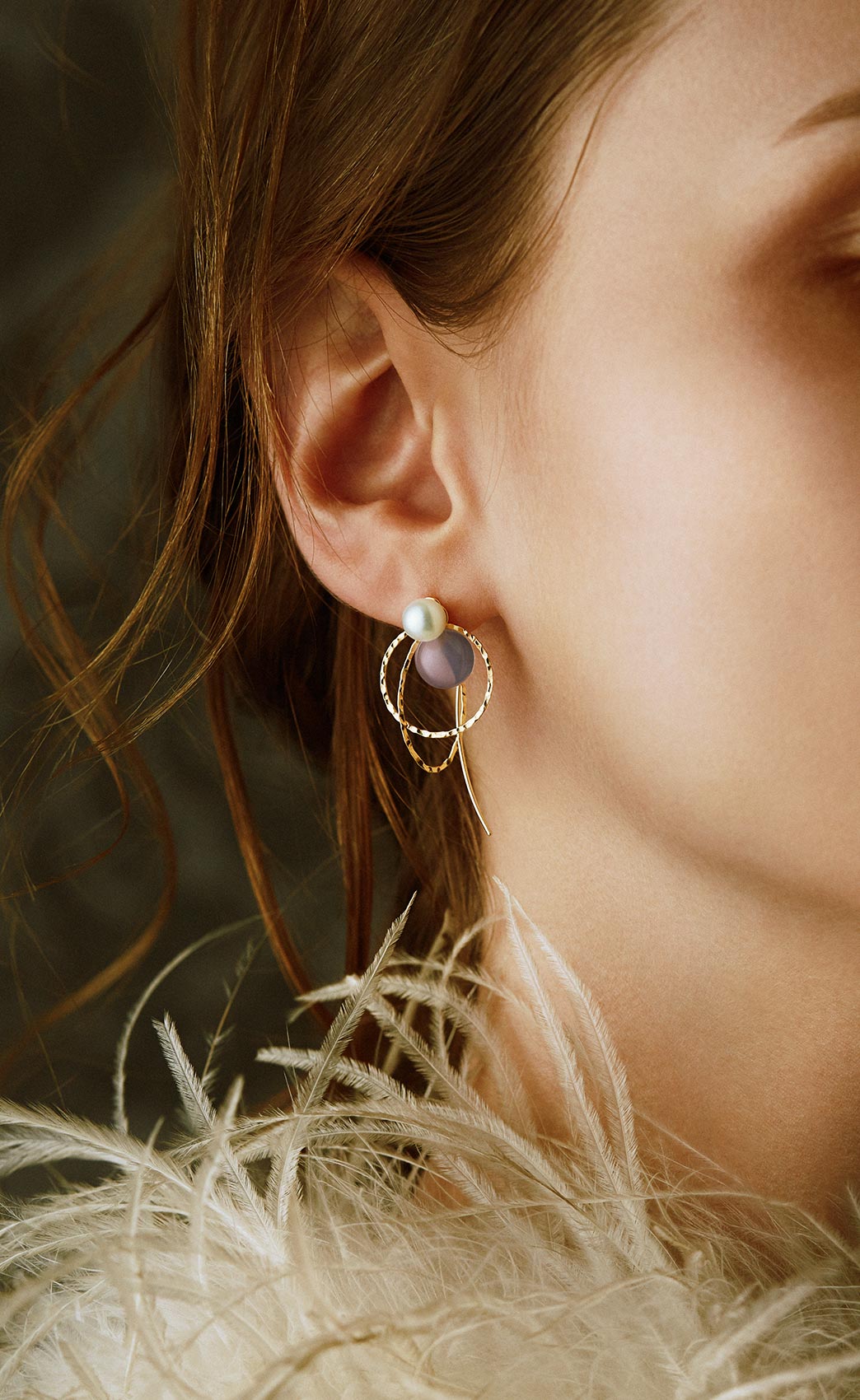 from top pierced earrings / G9K and pearl