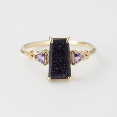 文藝復興時期、一位義大利玻璃工房師傅不小心將一塊銅片掉進了窯裡、 意外地創造了一種具有神秘美感的人造玻璃寶石。那就是紫金石。 它具有光澤的透明感與如同砂金在夜空中融化般的光芒、有著與天然寶石同等高貴的價值、 自古以來便作為珠寶廣受眾人喜愛。