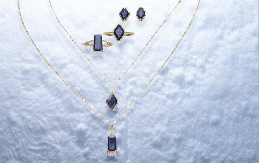 本季使用了象徵主題<Quiet Forest>的紫金石。也有像是瑪瑙與青金石這些別緻的藍色調寶石 、但如同漆黑的夜空般深邃與其所浮出的無數閃爍光芒是紫金石特有的。 這獨一無二的質感、展現了夜晚森林的寂靜與星空的透徹閃耀。依照不同商品、將紫金石與 石英貼合增添透明感、展現出冬季清澈的空氣感。並且、紫金石俐落的印象與跟其相反充滿溫 暖的植物細節所呈現的完美平衡散發魅力。 雖然紫金石較多是份量感的設計、搭配agete所注重的精緻細節與好穿戴的部分、即呈現出適 合成熟女性的古典設計。